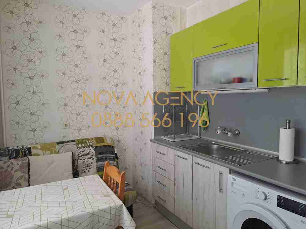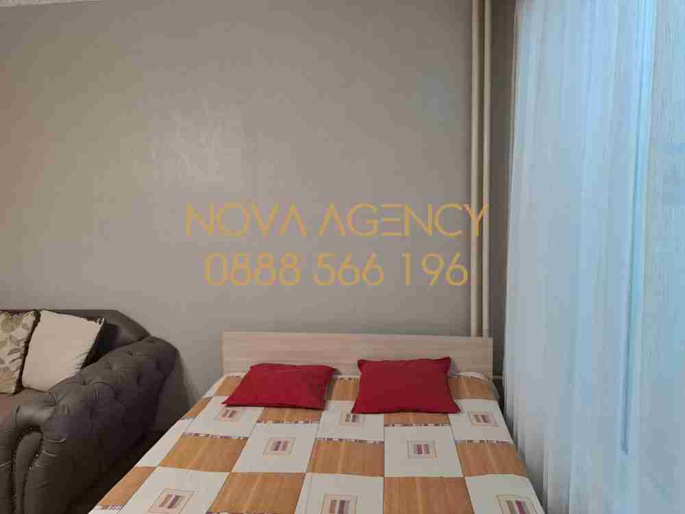 Отдаваме под наем обзаведена стандартна гарсониера с разпределение - антре с чисто нов гардероб, хладилник, кухня с вградени кухненски шкафове, телевизор, пералня, балкон с ПВЦ дограма - готварска печка и микровълнова фурна, стая - диван, холна секция, телевизор, легло с механизъм.